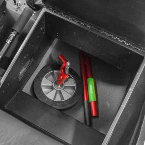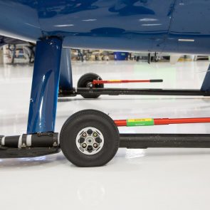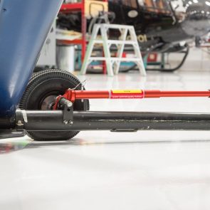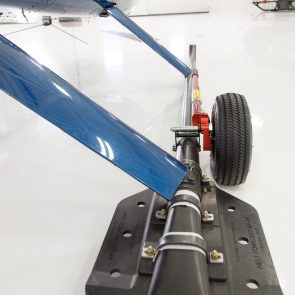 Wheel pin can be adjusted to two different positions allowing a clearance of 1.75” (4.5cm) from the ground to the bottom of the skid for the regular height, and 2.2” (5.5cm) for the high position.High position is ideal for high hangar rails and uneven terrain.