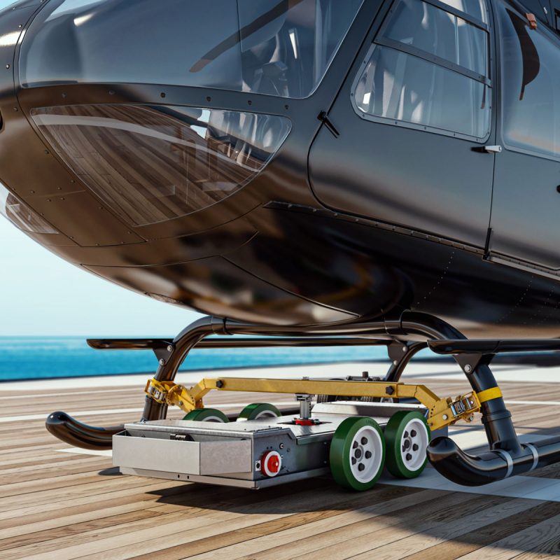 Ideal ForPeople needing a universal solution with sufficient traction to move their helicopter.People operating on Yacht / VesselLuxury version for busy FBOs with longer steel plate to allow transport of goods or ground handling wheels.